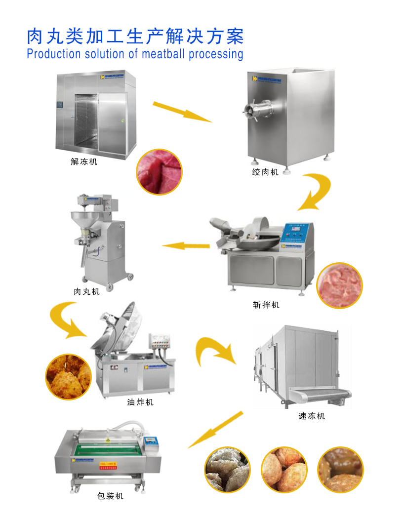 9、通過鏈條傳動到冷卻槽內的肉丸須在冷卻槽內迅速冷卻,冷卻槽內的水為開放型的,即進入冷水而溢出熱水已達到冷卻槽內水溫始終在20-25度左右。肉丸在冷卻槽內冷卻后可直接進入速凍車間掛冰冷凍。