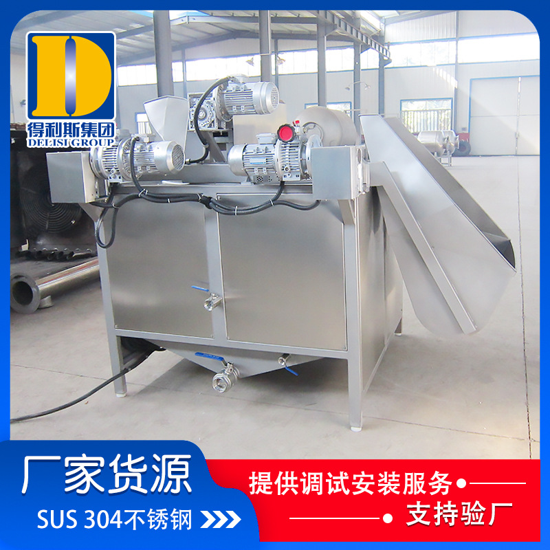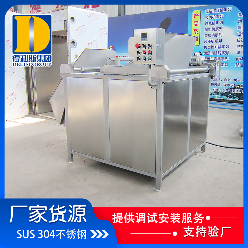 4、自動攪拌:保證產品炸制的均勻度,防止產品因擠壓而相互粘連。易漂浮的產品則采用拍打式攪拌;易沉底的產品則采用刮底式攪拌。