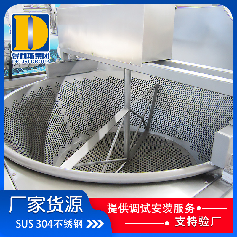 2、諸城得利斯新研發的一款油炸設備,有效控制黑油現象,延長食用油的使用壽命設備可以實現自動清理殘渣功能。